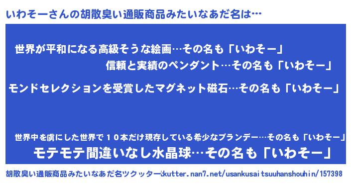 | ヒーロー風カッコイイあだ名 | 『慈愛の使者いわそー』『魔戒騎士イワ』 |