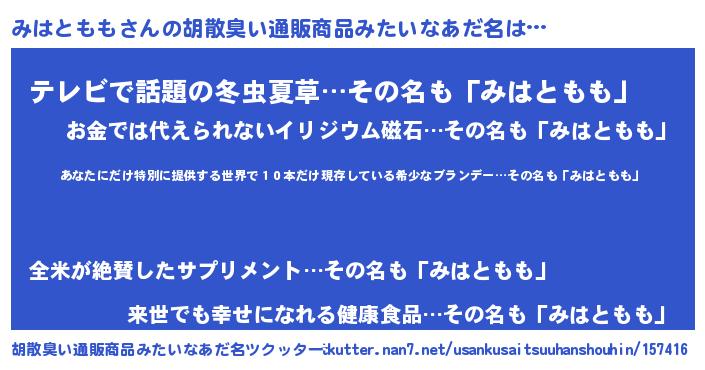 | ヘコむあだ名 | 『みはともも(苦笑)』『みはっちょ』 |