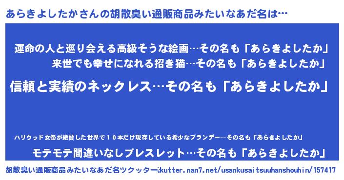| 肩書あだ名 | 『あらきよしたか少将』 |