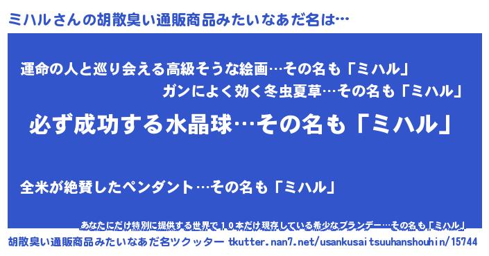 | ヘコむあだ名 | 『ミハにゅー』『レバニラ』『ミハお』 |