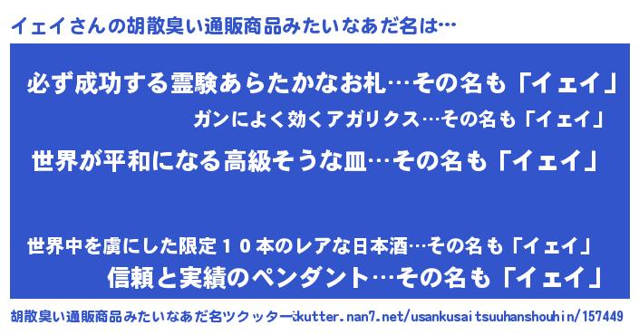 | 恥ずかしいあだ名 | 『イェっちょ』『プリティーイェイ』 |