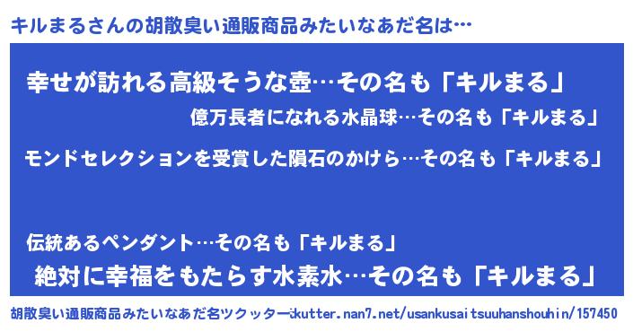 | 伝説のあだ名 | 『救世主となる錬金術士キルまる』 |