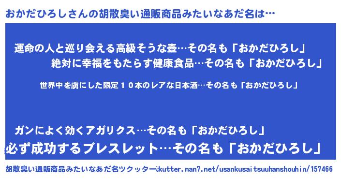 | 意味不明あだ名 | 『住所不定無職おかだひろし(14歳)』 |