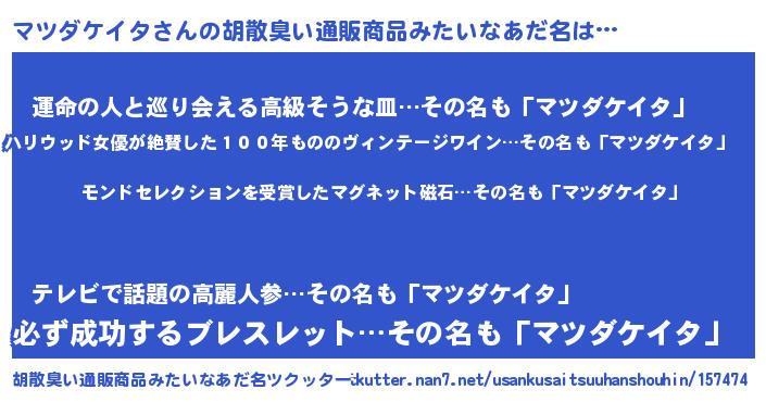| 意味不明あだ名 | 『眠気覚ましガムマツダケイタ味』 |