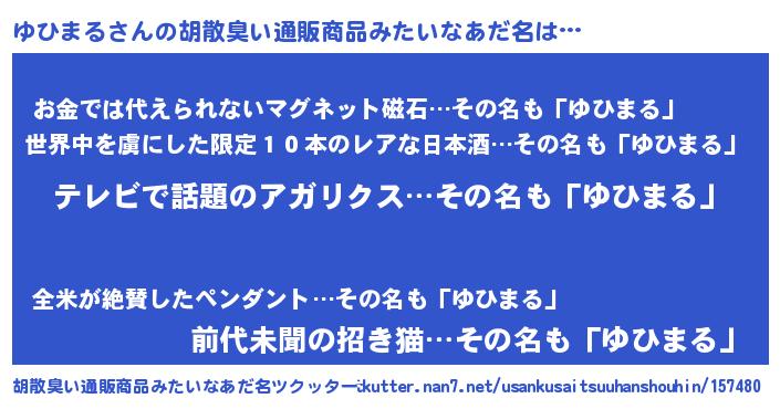 | ヘコむあだ名 | 『ゆひまる(苦笑)』『ゆひを』 |