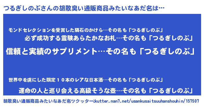 | 男性向けラノベタイトル風あだ名 | 『はたらくつるぎしのぶさま!』 |