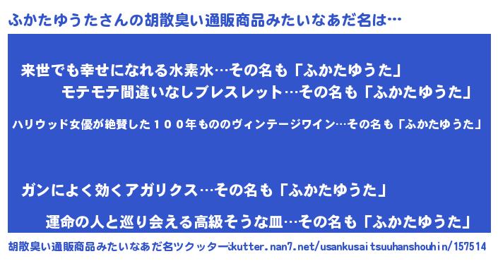 | 意味不明あだ名 | 『住所不定無職ふかたゆうた(8歳)』 |