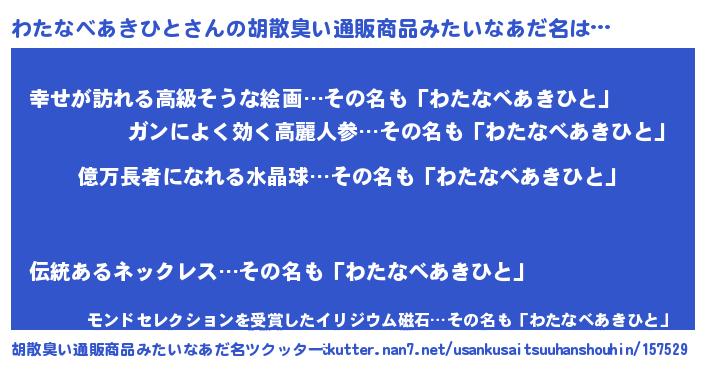| 意味不明あだ名 | 『つくし科わたなべあきひと属』 |