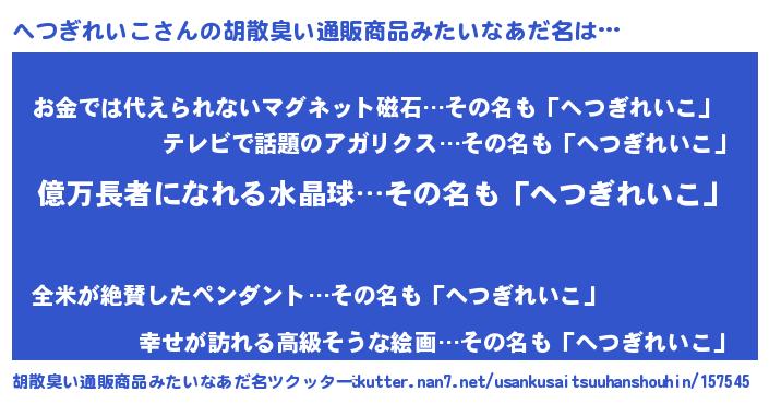 | 肩書あだ名 | 『へつぎれいこ艦長』『へつぎれいこCEO』 |