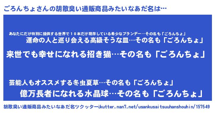 | ヘコむあだ名 | 『ごろんちょ(笑)』『ごろもー』 |