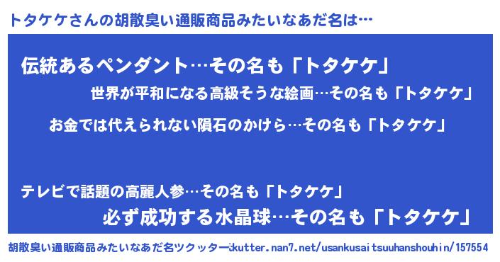 | 女子向けラノベタイトル風あだ名 | 『トタケケ恋絵巻』『トタケケ伯爵の花嫁』 |