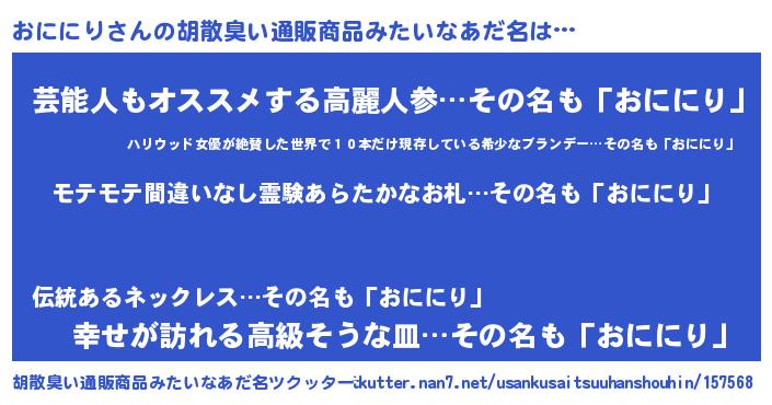 | 意味不明あだ名 | 『ペロリンおににり』『自称おににり』 |