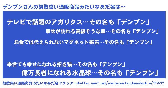 | ヘコむあだ名 | 『デンふぇ~』『牛乳』『デンぷりん』 |