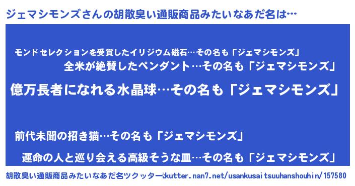 | 男性向けラノベタイトル風あだ名 | 『ジェマシモンズアートオンライン』 |