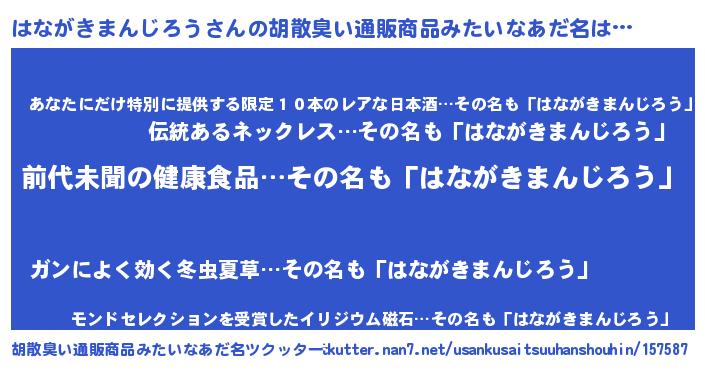 はながきまんじろうさんの胡散臭い通販商品みたいなあだ名をツクッター!