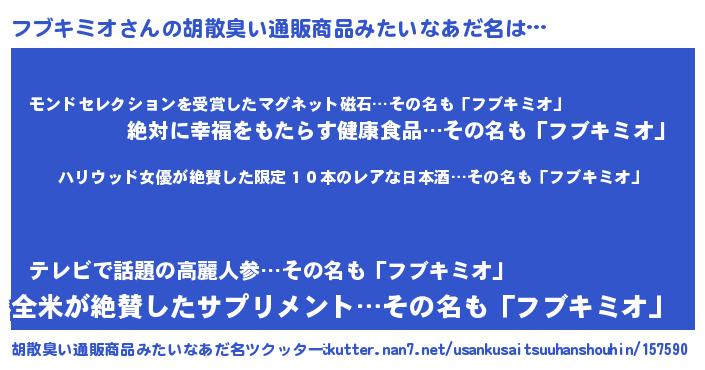 | 意味不明あだ名 | 『住所不定無職フブキミオ(59歳)』 |