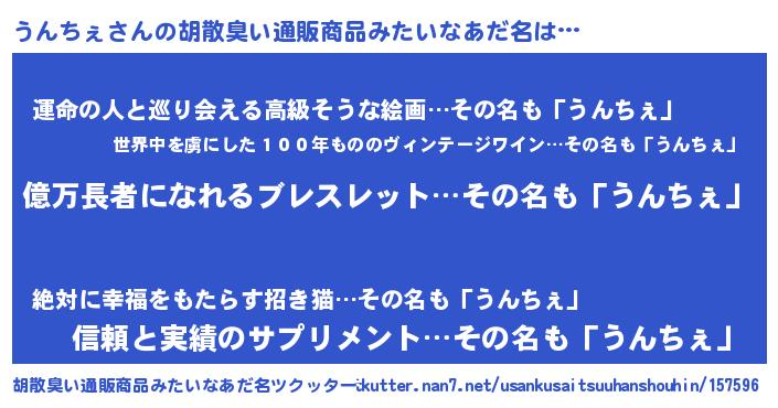 | ヒーロー風カッコイイあだ名 | 『スーパーウンチェ』『炎刃騎士ウン』 |