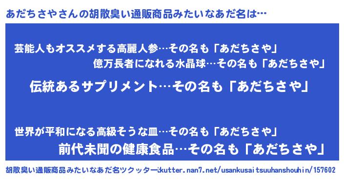| 意味不明あだ名 | 『とにかく怪しいあだちさや』 |