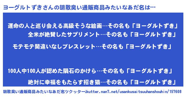 | 男性向けラノベタイトル風あだ名 | 『ヨーグルトずきの憂鬱』 |
