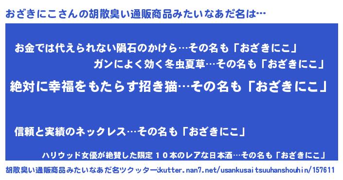 | 男性向けラノベタイトル風あだ名 | 『オザキニコスレイヤー』 |