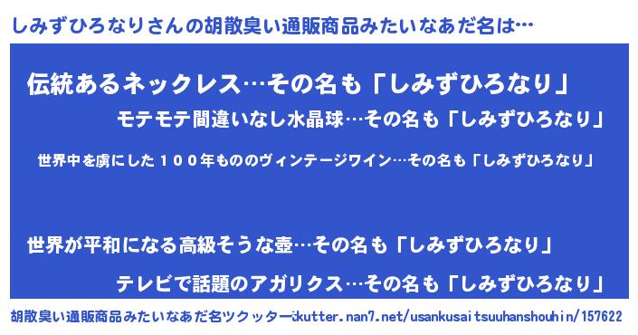 | 欧米人風あだ名 | 『ダレノガレしみずひろなり』 |