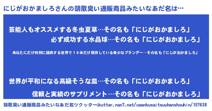 | 欧米人風あだ名 | 『ダレノガレにじがおかましろ』 |
