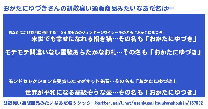 | 男性向けラノベタイトル風あだ名 | 『オカタニユヅキアートオンライン』 |