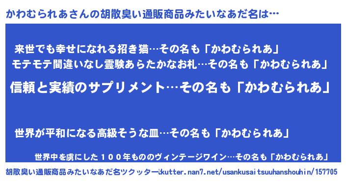 かわむられあさんの胡散臭い通販商品みたいなあだ名をツクッター!
