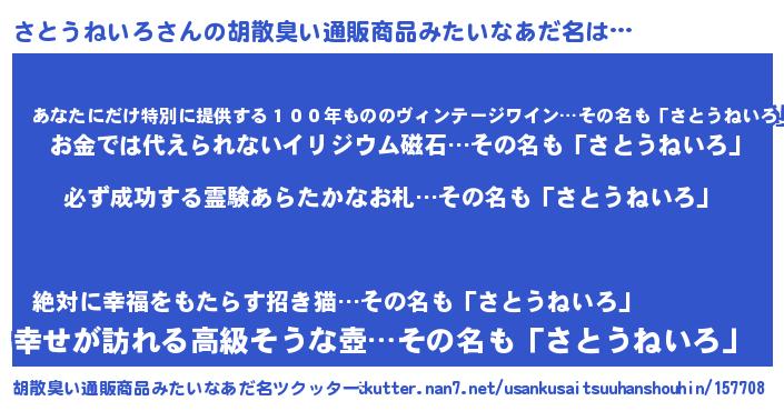 | 意味不明あだ名 | 『ペロリンさとうねいろ』 |