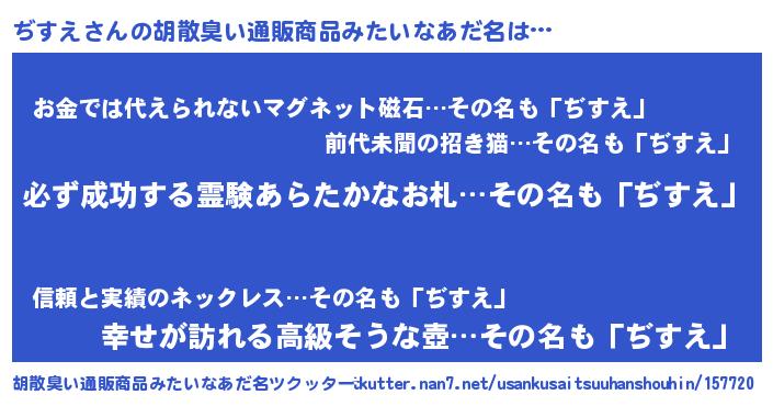 | 伝説のあだ名 | 『伝説のスナイパーぢすえ』 |