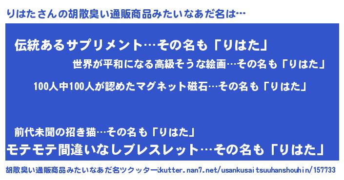 | ヒーロー風カッコイイあだ名 | 『友情の使者りはた』『魔戒騎士リハ』 |