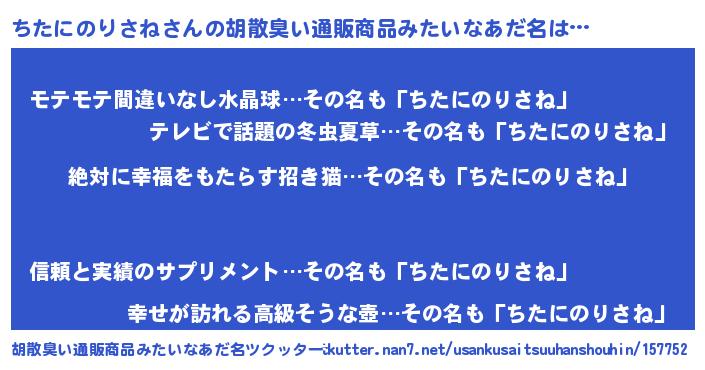 | 伝説のあだ名 | 『聞きしに勝る吟遊詩人ちたにのりさね』 |