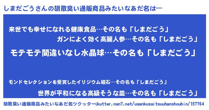 | ヘコむあだ名 | 『しまにゅー』『しまだごう(爆)』 |