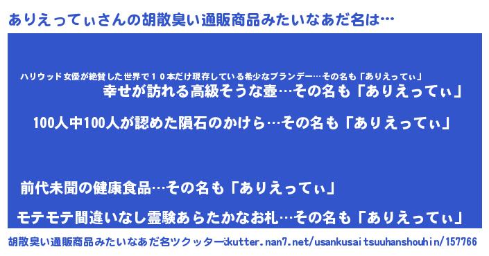 ありえってぃさんの胡散臭い通販商品みたいなあだ名をツクッター!