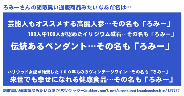 | 意味不明あだ名 | 『とにかく怪しいろみー』『自称ろみー』 |