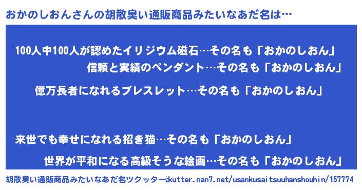 | 男性向けラノベタイトル風あだ名 | 『おかのしおんに滅ぼされるだけの簡単なお仕事です』 |