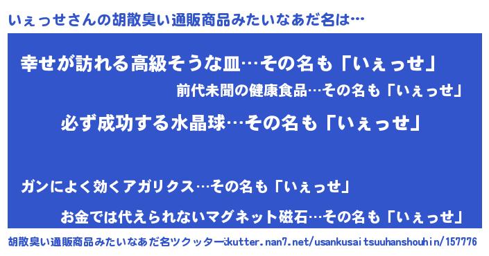 | ヘコむあだ名 | 『いぇにゅー』『なまこ酢』『いぇお』 |