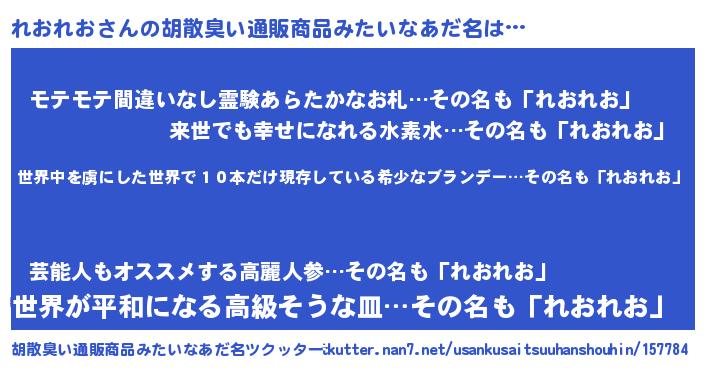 | 意味不明あだ名 | 『住所不定無職れおれお(74歳)』 |