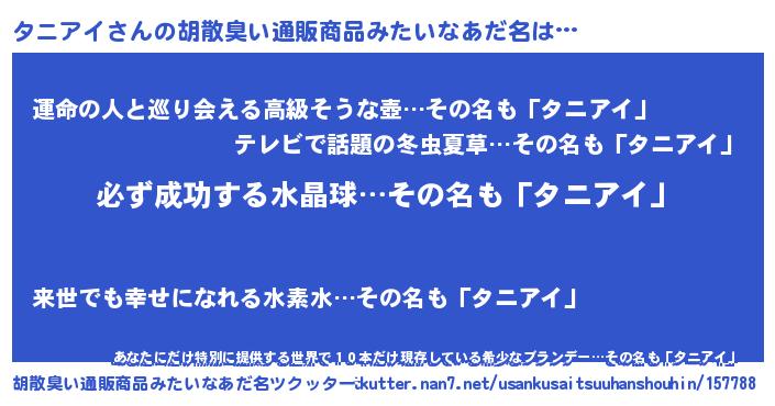 | 意味不明あだ名 | 『しいたけ科タニアイ属』『自称タニアイ』 |