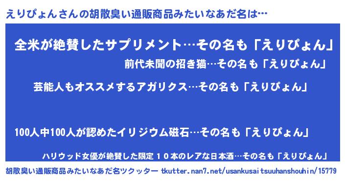 | 意味不明あだ名 | 『自称えりぴょん』『永久保存えりぴょん』 |