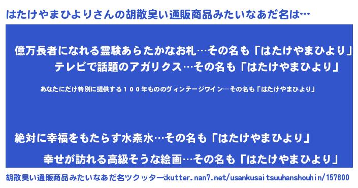 | 欧米人風あだ名 | 『ダレノガレはたけやまひより』 |