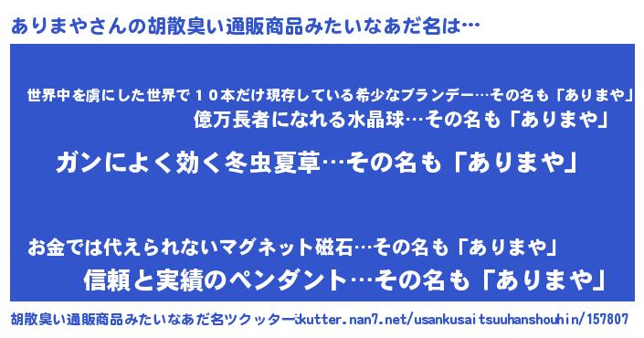 | ヘコむあだ名 | 『ありっちょ』『ありっふぃ~』 |