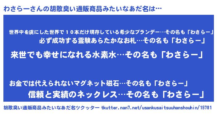 | ヘコむあだ名 | 『わさらー(苦笑)』『わさ太郎』 |