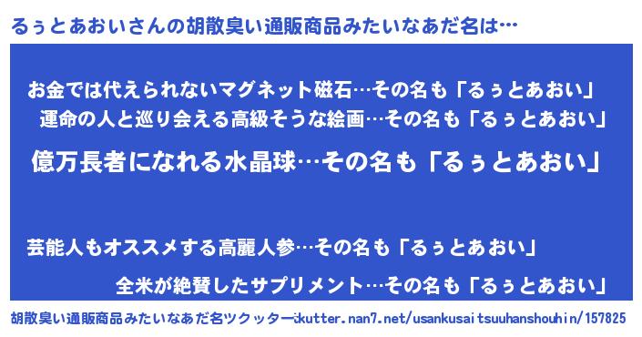 | ヒーロー風カッコイイあだ名 | 『スーパールゥトアオイ』『天弓騎士ルゥ』 |