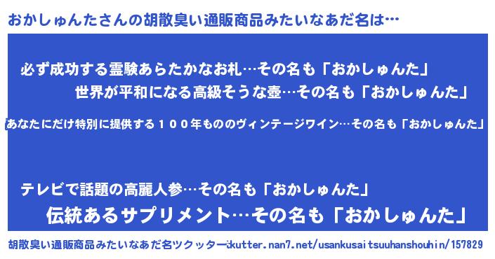 | 意味不明あだ名 | 『つくし科おかしゅんた属』 |
