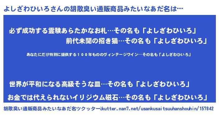 | 意味不明あだ名 | 『住所不定無職よしざわひいろ(7歳)』 |