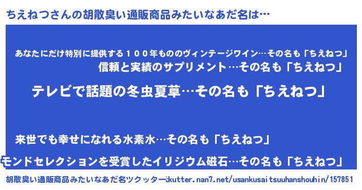 | 女子向けラノベタイトル風あだ名 | 『闇のちえねつ』『死神ちえねつの再婚』 |