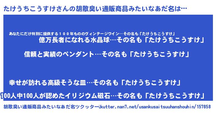 | 伝説のあだ名 | 『孤高の遊び人たけうちこうすけ』 |