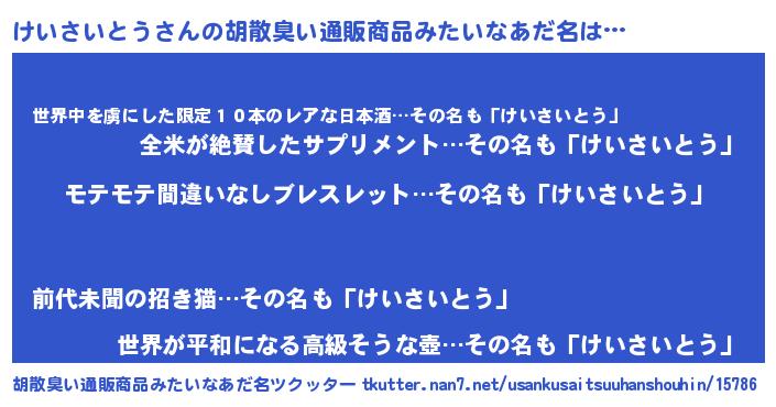 | 肩書あだ名 | 『けいさいとうCEO』『けいさいとう船長』 |