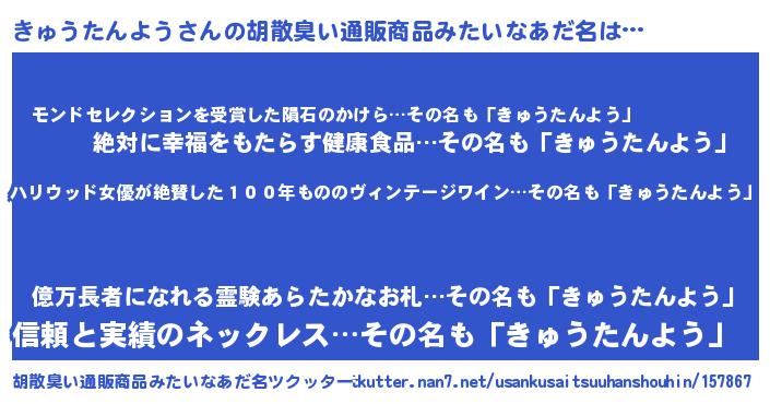 | ヘコむあだ名 | 『きゅお』『きゅうたんよう(震え声)』 |